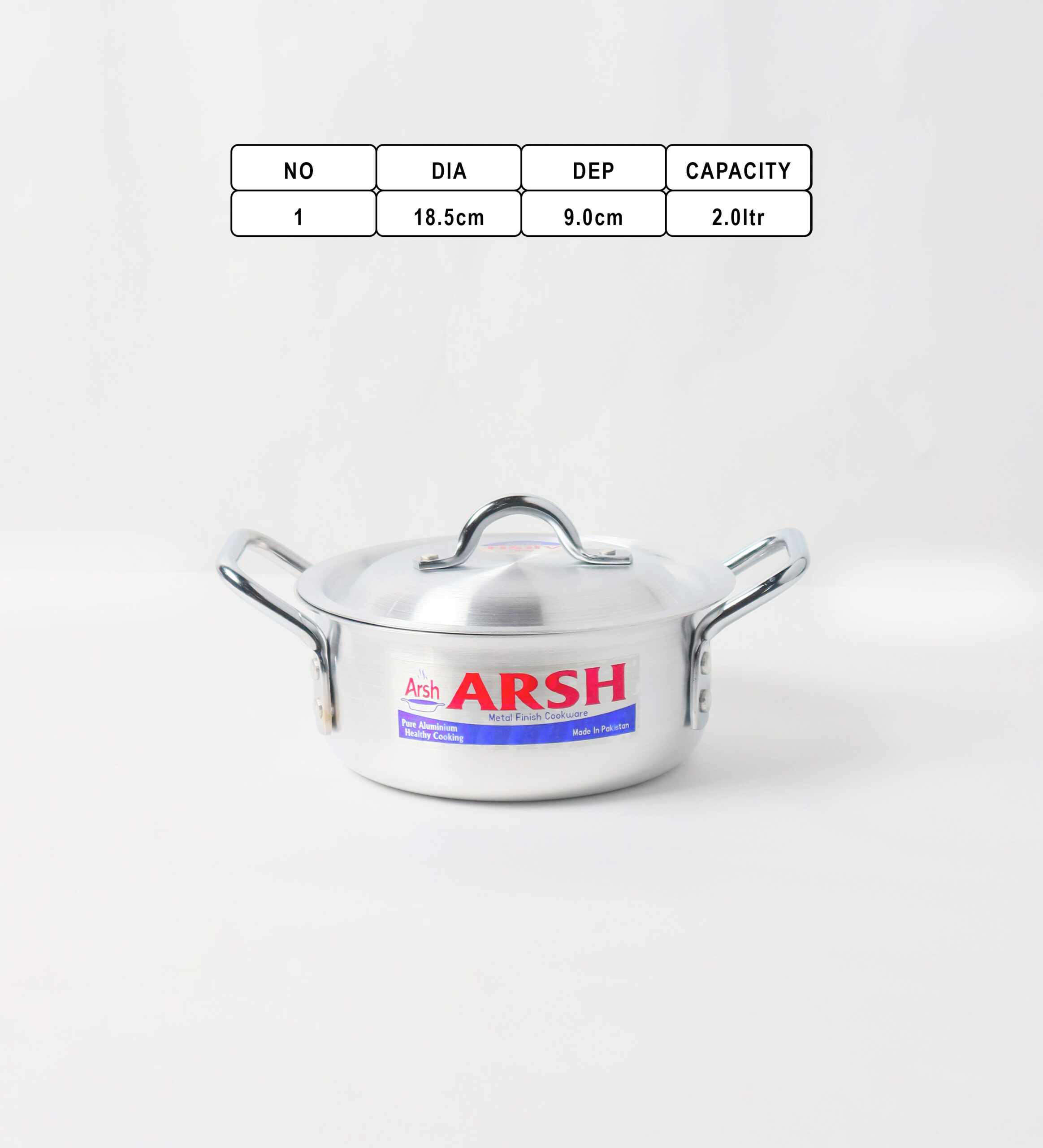 • No. 1: 18.5 cm diameter, 9.0 cm depth, 2.0 liters